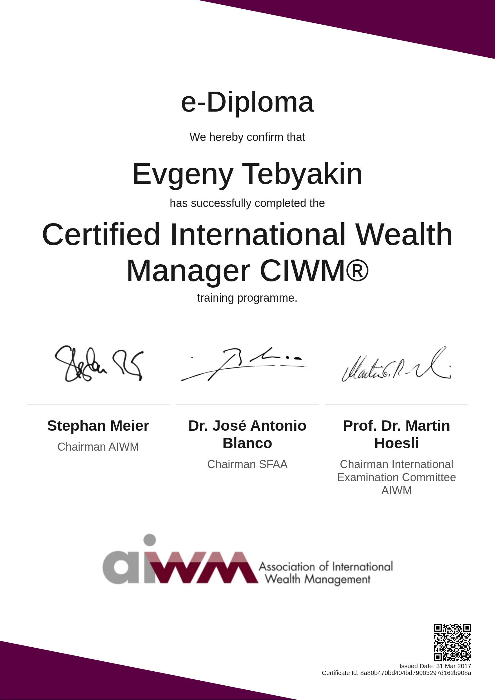Evgeny Tebyakin | Certified International Wealth Manager CIWM®