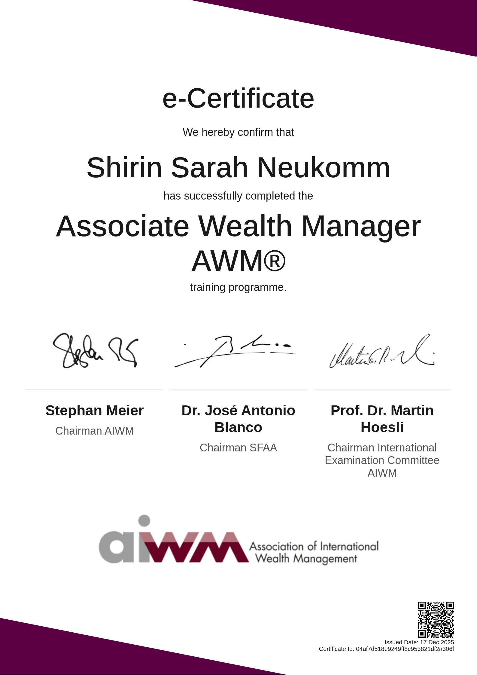 Shirin Sarah Neukomm | Associate Wealth Manager AWM®
